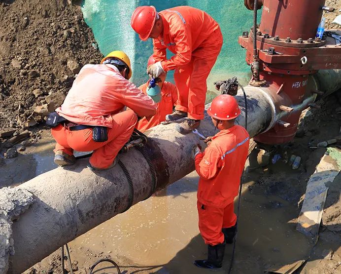 在不間斷施工的10小時(shí)過(guò)程中,先后完成管道斷管、焊接、新舊管道碰接,恢復(fù)新管道供氣全過(guò)程施工,確保了棲月苑小區(qū)、潤(rùn)揚(yáng)中學(xué)和清華園小區(qū)的晚餐正常用氣。